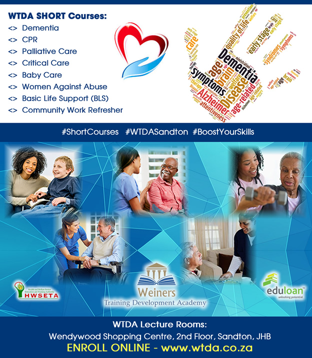 Weiners Short CoursesWeiners Training Development Academy offers a range of Short Courses aimed at informing students of specific topics, allowing them to expand their knowledge and care within each. Our popular short courses begin at the start of each new month, running on weekends to enable more people to benefit from these valuable courses. Add to your existing set of skills and boost your career prospects with WTDA's short courses on weekends. At WTDA, we give our students the Skills, Experience and Knowledge they need to enter the job market as Qualified Caregivers. |